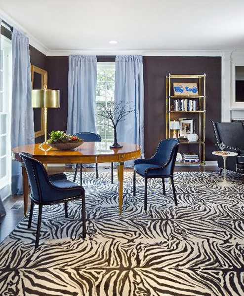 The deep brown dining room furniture, the| beige walls and the white breezy curtains that adorn the balcony door create a perfect setting zebra-printed floor rug or the mature-looking furniture, each element adds to the strong, ... Retrieve Full Source